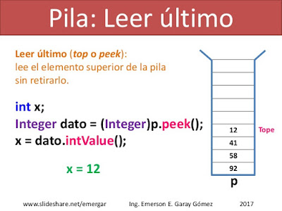 • Leer último: Muestra el primer elemento de la pila sin retirarlo.